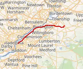County Route 543 (CR 543) is a county highway in the U.S. state of New Jersey. The highway extends 28.77 miles (46.30 km) from Federal Street (CR 537) in Camden to Wrightstown-Georgetown Road (CR 545) in Mansfield Township.