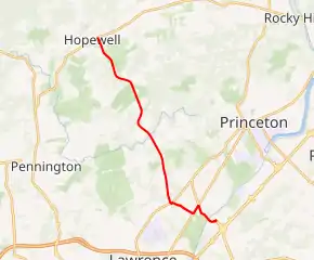 County Route 569 (CR 569) is a county highway in the U.S. state of New Jersey. The highway extends 8.53 miles (13.73 km) from Quakerbridge Road (CR 533) in Lawrence Township to Broad Street (CR 518) in Hopewell Borough.