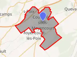 Location of Courcelles-sous-Moyencourt ![]() | |