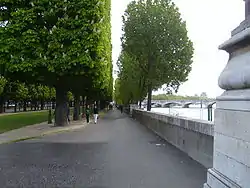 The Cours-la-Reine, also spelled Cours la Reine (without hyphens), is a public park and garden promenade located along the River Seine, between the Place de la Concorde and the Place du Canada, in the 8th arrondissement of Paris. It is one of the oldest parks in Paris, created in 1616 by Queen Marie de Medicis.[1] The further extension of the garden between Place du Canada to Place d'Alma is called the Cours Albert Premier.