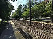 The station opened on December 17, 1913, with the initiation of rail service on what is now Shaker Boulevard.[1] The rail line was in the nature of a streetcar line, and it ran from the existing tracks on Fairmount Boulevard, south on Coventry Road, and then east along the newly laid-out boulevard, initially an extension of Coventry. At that time, there was no Shaker Boulevard west of Coventry, and Coventry did not extend south beyond Shaker. The line was built by Cleveland Interurban Railroad (CIRR) and operated by the Cleveland Railway until 1930. The railway also operated the streetcar line on Fairmount Boulevard. Trains ran from the terminus at Fontenay Road, down Coventry Road, and then to downtown Cleveland using the Cleveland Railway tracks from Fairmount Boulevard.