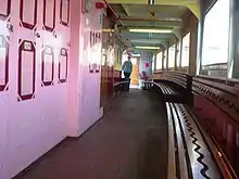 The current vessel Floating Bridge No.6 was built by Welsh boat builders Mainstay Marine. It has an expected lifespan of 40 years and around twice the carrying capacity of the previous vessel, Floating Bridge No.5. It was installed on the Isle of Wight on 3 May 2017.[16] Despite delays, the vessel's maiden voyage took place 10 days later on 13 May 2017.[17] The following day, the vessel broke down due to a power cut, forcing passengers to wade through the River Medina to disembark the ferry. Further problems were caused by the angle of the slipway causing cars to scrape bumpers when loading and unloading from the East Cowes side.[18] On 15 May 2017, the Maritime and Coastguard Agency suspended the service, citing "training issues". The temporary pedestrian launch which had been used after the previous vessel's retirement and the new vessel's installation was re-instated, but vehicles were once again forced to take the 10-mile round trip through Newport.[19] After several months of suspension and intermittent operation, full service resumed in early 2018.