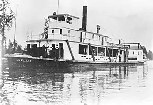Cowlitz was a shallow-draft sternwheeler built for service on the Cowlitz River in southwestern Washington State. The vessel also served on the Columbia River. Cowlitz was in service from 1917 until September 1931, when, not far from The Dalles, Oregon, it sank in the Columbia river in a storm.