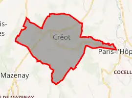Créot is a commune in the Saône-et-Loire department in the region of Bourgogne-Franche-Comté in eastern France.