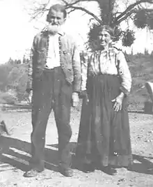 John Fletcher Crabtree (1824-1915) was born in Virginia on April 13, 1824. When a young man, John moved to Missouri where he met, and then married Elizabeth Davis on November 28, 1844. The couple traveled west to California in 1852, and first homesteaded in Contra Costa County, before finally settling in Lake County around 1866, first at Seigler Canyon. About 1890, John Fletcher Crabtree, his wife Elizabeth, and their sons Alphonzo and William, moved to Twin Valleys which included the Crabtree Hot Springs, which son, Orin Crabtree, had found 10 or 15 years earlier. John built his home about 150 yards southwest from the junction of Rice Fork and Salt Creek, on a bench on land. John and Elizabeth had 12 children (four daughters and eight sons). John F. & Elizabeth Crabtree moved to Upper Lake sometime between 1902 and 1904. He died on April 3, 1915 and is buried in the Upper Lake Cemetery.[4]