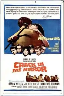 Crack in the Mirror is a 1960 drama film directed by Richard Fleischer. The three principal actors, Orson Welles, Juliette Gréco, and Bradford Dillman, play dual roles in two interconnected stories as the participants in two love triangles.