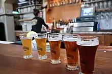 City beer tours differ city to city and tour company to tour company, but the general premise remains the same. Tour companies set up tours with local beer makers and breweries that allow for patrons of the tour to receive free samples and tastings at different breweries with the price of admission for the tour.[20] Tours also usually offer transportation between locations, some provide transport via bus, others include organized biking or walking tours. Many tours may also be paired with food from a local restaurant.[20] BeerQuest Beer Tours in downtown Portland, Oregon offers both a walking and biking tour, and even include seasonal holiday and haunted pub crawls as well.[21] Tapped Enterprises in Long Island, New York offers a Bay Brews, and Fishing Cruise Tour, which includes stops at local breweries, finished off with an afternoon of Flounder fishing in Long Island Sound.[22]