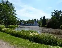 Waterhouse created or modified the majority of the features which remain in the park today, including the walled garden, Cypress avenue, rose garden, Italian garden and temple (demolished by Fife County Council in 1966).[3] In 1920 Waterhouse added a series of lakes and the picturesque island village, now known as the 'Dutch Village'. A summerhouse was also inserted into eastern boundary of the walled garden.[6]