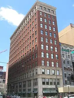 The Crane Company Building is a skyscraper located at 836 S. Michigan Ave. in the Loop community area of Chicago, Illinois. The twelve-story building was designed by Holabird & Roche and built in 1912. The steel frame skyscraper was designed in the Classical Revival style, and its exterior design is split into three sections. The first and second floors are faced in limestone and feature piers supporting a cornice; the third floor is also covered in limestone. The fourth through eleventh floors are constructed in red brick; windows on these floors feature terra cotta keystones and sills, and the eleventh floor is capped by a terra cotta cornice. The twelfth floor is decorated in terra cotta panels which incorporate Crane Company valves in their design; this floor is also topped by a cornice.[2]