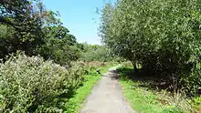 The reserve is part of a park which has a variety of names. An old notice on the site calls it River Crane Park, while a newer one shows it as part of Crane Valley Park, which stretches along the River Crane from Great Chertsey Road to the Grand Union Canal.[5] It is also shown as part of the six mile long linear Crane Valley Park by London Gardens Online,[6] while London's environmental information centre, Greenspace Information for Greater London, calls it Dudset Farm Pastures.[4][7] The London Loop long-distance walk goes through the reserve, and the directions show it as Crane Bank Park.[8]