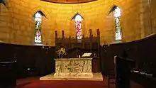 A later church was built at the current site in 1805.[1] Queen Victoria worshipped there from 1848, and every British monarch since has worshipped at Crathie Kirk. Victoria laid the foundation stone for a new, much larger, church in 1893. Victoria's decision to worship at Crathie Kirk initially caused a scandal, particularly when it was discovered that she had received communion there. As Supreme Governor of the Anglican Church of England, it was expected that she would worship in the Scottish Episcopal Church, which recognised the authority of the Archbishop of Canterbury, although to do so would have been illegal since in her own words "Scotch bishops are mere dissenters".