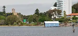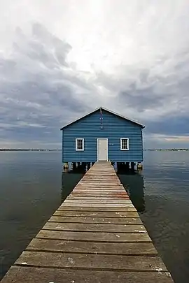 The Crawley Edge Boatshed is a well-recognised and frequently photographed site in Crawley.[6] It is thought to have been originally constructed in the early 1930s. It has changed hands several times, and after being refurbished in the early 2000s, it was re-launched by triple solo-circumnavigator of the world, Jon Sanders, and single solo-circumnavigator David Dicks.