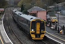 Passenger staff were withdrawn from the station in the mid-1960s and the goods yard closed on 4 December 1967.[5] The route to Plymouth had been closed from 5 March 1967 although a service from Exeter to Okehampton continued to operate until 3 June 1972 after which the line only carried traffic from the quarry at Meldon. Since 17 October 1971 the two tracks west of Crediton operated as two single lines, the former down line serving Okehampton and the former up line trains on the Barnstaple route.[8] From 17 December 1984 the line west of Crediton was also singled with trains to and from Exeter using a single track between Crediton and Cowley bridge Junction.[9] Passenger services to Okehampton resumed on 20 November 2021.[10]