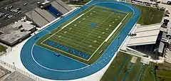 The field is used for football during the first semester of the school year, and for soccer during the second half. Track and field athletics also use the stadium for competitive running, jumping, and throwing.