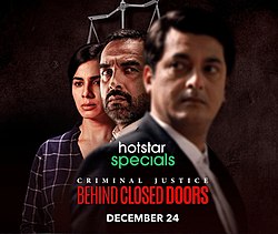 Criminal Justice: Behind Closed Doors is an Indian Hindi-language legal drama web series for Hotstar Specials written by Apurva Asrani and directed by Rohan Sippy and Arjun Mukerjee. The series stars Pankaj Tripathi, Kirti Kulhari, Khushboo Atre and Jisshu Sengupta, and was released through Disney+ Hotstar on 24 December 2020.[1]