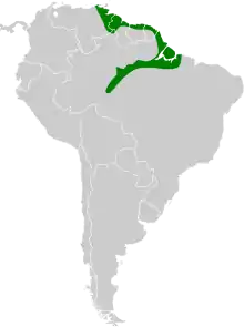 The crimson-hooded manakin (Pipra aureola) is a species of bird in the family Pipridae. It is found in Brazil, French Guiana, Guyana, Suriname, and Venezuela. Its natural habitats are subtropical or tropical swampland and heavily degraded former forest. It is the northernmost member of the genus Pipra. It forms a superspecies with both the Band-tailed Manakin (Pipra fasciicauda) and the Wire-tailed Manakin (Pipra filicauda).[2]