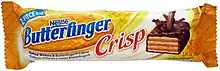 Nestlé Crisp is a line of wafer candy bars that are based on existing Nestlé brands and sold in the United States. There are currently three Crisp bars in production: the Butterfinger Crisp, the Baby Ruth Crisp and the Nestlé Crunch Crisp. Each package is made up of two small, individual bars.