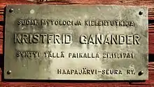 Cristfried Ganander (21 November 1741 in Haapajärvi – 17 February 1790 in Rantsila) was a Finnish compiler of folk culture, a priest and an 18th-century lexicographer. Ganander's greatest achievement was the compilation of the first fully extensive Finnish-language dictionary which was, however, unpublished. He was also a collector of folk culture well before Elias Lönnrot. His most well-known published work is Mythologia Fennica in 1789, a reference book of folk religion. He also published some poetry and worked as a teacher.