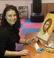 She's specialist in iconography.[2] Some of her icons were sold over a thousand euros.[9]