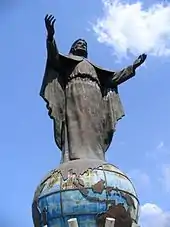 The statue, and the globe on which it rests, are mounted on the peak of Cape Fatucama at the end of the Fatucama peninsula.[1][2][3] The statue is accessible from the car park at Cristo Rei Beach, on the south side of the cape, inside the Bay of Dili, via a 570-step concrete staircase shaded by trees.[4][5][6][7]