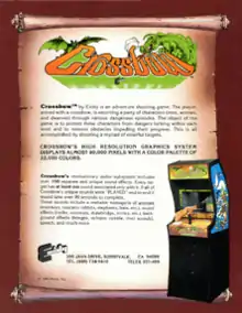 Crossbow is a light gun shooter video game released in arcades by Exidy in 1983.[1] It was later published by Absolute Entertainment for the Commodore 64 and MS-DOS, and by Atari Corporation for the Atari 2600, Atari 7800, and Atari 8-bit family starting in 1987.[2] The game is controlled via a positional gun that resembles a full-sized crossbow.