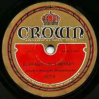 Crown Records was a record company and dime-store label that existed from 1930 to 1933 in New York City. Its catalogue included music by Eubie Blake and Fletcher Henderson.[1] Known as the label offering "Two Hits for Two Bits" proudly printed on their sleeves, Crown's discs sold for 25 cents.