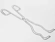 Crucible tongs are scissor-like tools, but instead of having two blades, these tools are replaced with two pincers or pieces of metals that concave together, which allow the users to grasp a hot crucibles, flasks, evaporating dishes, or even small beakers.[1] They are made of durable metals, allowing them to endure a very hot temperature when touching with the hot objects.[2]