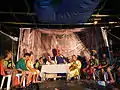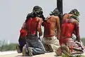 The Siete Palabras (Seven Last Words) play in Angeles, Pampanga, depicts the sufferings of Christ from his sentencing by Pontius Pilate to his death.[20] This takes the form of a colourful street play, with dozens of men carrying wooden crosses as heavy as 50 kg (110 pounds) and scores flagellating themselves in Barangay Lourdes Northwest, Angeles, between 14:00 and 15:00 PST (GMT+8),[21]