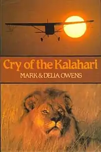 Cry of the Kalahari (1984) is an autobiographical book detailing two young American zoologists, Mark and Delia Owens, and their experience studying wildlife in the Kalahari desert in Botswana in the mid-1970s.[1] There they lived and worked for seven years in an uninhabited area named Deception Valley in the Central Kalahari Game Reserve.[2][3] With no roads and the nearest civilization eight hours away they had only each other and the animals they studied as company, most of which had never seen humans before. Their research focused mainly on lions, brown hyenas, jackals and other African carnivores. Cry of the Kalahari is the personal story of the Owens' encounters with these and a myriad of other animals and depicts their own struggle to live and work in such an inhospitable and unforgiving environment.[4]