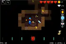 The game was released on Steam early access on July 30, 2014, using public feedback to improve the title,[9][10] with full release on April 23, 2015.[11] The game was released for the PlayStation 4 and PlayStation Vita on February 2, 2016.[12][13] An iOS version, with support for both screen and Bluetooth controllers, was released on June 30, 2016.[14] An Xbox One version of the game was released on February 10, 2017.[15] A Nintendo Switch version was released on February 1, 2018, which includes a new character exclusive to the platform as well as co-operative support.[16][17] The developers had approached Nintendo about providing Switch-unique DLC based on Nintendo's properties for this release. Instead, this led to further discussions to make a wholly new crossover game, Cadence of Hyrule, with Cadence joined by Link and Zelda in the world of The Legend of Zelda.[18]