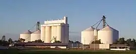 ![]() The rising sun catching the Crystal Brook grain silos on a clear winter's morning; the town sports oval in the foreground | |||||||||||||||