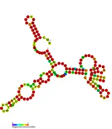 cspA mRNA 5' UTR is the untranslated region of the cspA gene, which is important in the cold shock response in Enterobacteriales such as E. coli. The 5' UTR element acts as an RNA thermometer, regulating the expression of cspA in response to temperature.[1] By regulating temperature, cspA proteins carry out the vital function of homeostasis.