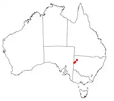 The Barrier Range Dragon is found in the rocky hills of Western NSW at just three locations, including Mutawintji National Park, Purnamoota and Silverton Wind Farm.[1][5] Typically, this species occurs in rocky habitat such as outcrops, gorges, ridges and scattered rock aggregates.[5][6] However, it has also been recorded in mulga shrubland, black oak woodland and hummock grass woodland habitat.[1]