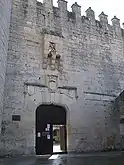 It is difficult to attribute a precise date to the construction of the castle of Cuéllar. The walled enclosure already appears in documents from 1264, and it was Alfonso X the Wise who granted the council of Cuéllar the possibility of investing the proceeds of certain fines in its repair.[5] Despite this, the remains of an 11th-century wall were found in the section of the wall on which the castle stands after restoration work.[6] Also from an earlier period, perhaps from the late 12th or early 13th century, is the Mudejar gate located on the south façade of the castle, so that the most complete hypothesis suggests that the castle must have arisen at the same time as the walled enclosure. The first record of the castle as such dates from 1306, when on 2 October of that year Ferdinand IV granted a document from Burgos similar to that of his grandfather Alfonso X the Wise, granting the use of the proceeds from the fines to "refurbish the castle".