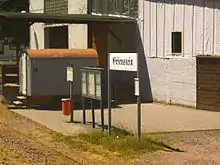 With the regular opening of the railway the station was given a station building as it was the only intermediate station along the route.[42] Because it had a rather low importance it was correspondingly small.[43] In the mid-1970s it was dismantled and rebuilt 200 metres away, not far from the local road through the valley. By the turn of the millennium it was no longer occupied and rather run down.[41]