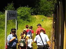 The platform, which has since been demolished, was between the two surviving tracks. Additional facilities included a goods shed.[42] During the Second World War there were plans by the Reichsbahn to upgrade the halt to a full station; but this was never realised. Towards the end it was just called Esthal. The halt has not been reactivated since the formation of the heritage line.[45]