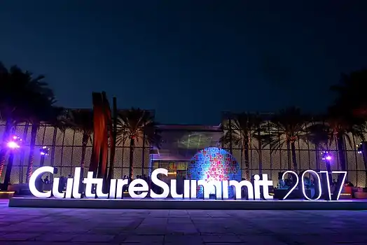 CultureSummit 2018 will take place at Saadiyat Island, Abu Dhabi, UAE from April 8-12, 2018 and focus on this year's theme of Unexpected Collaborations.[2][3] The event will feature a series of curated performances, exhibits, and interventions by renowned artists and musicians across the world, from the European Union Youth Orchestra to Abu Dhabi’s Bait Al Oud musical academy, with new collaborations transcending disciplinary and cultural boundaries.