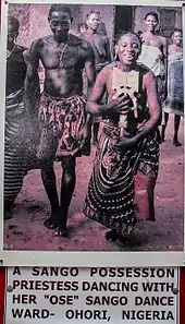 A Sango priestess dancing with a cult servant during a festival