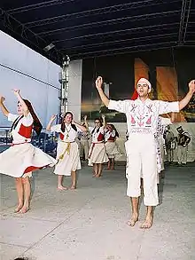 Portuguese folk music is the joint of the traditional songs of a community that express through a poetic character their beliefs and tell their history to other people and generations. The danças do vira (Minho), Pauliteiros de Miranda (Miranda), Corridinho do Algarve or Bailinho (Madeira), are some examples of dances created by the sound of folk. Some of the typical instruments used are a guitar, mandolin, bagpipes, accordion, violin, drums, Portuguese guitar and an enormous variety of wind and percussion instruments.