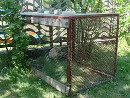 Extensive cuniculture refers to the practice of keeping rabbits at a lower density and a lower production level than intensive culture. Specifically as relates to rabbits, this type of production was nearly universal prior to germ theory understanding of infectious parasites (especially coccidia) and the role of nutrition in prevention of abortion and reproductive loss. The most extensive rabbit "keeping" methods would be the harvest of wild or feral rabbits for meat or fur market, such as occurred in Australia prior to the 1990s. Warren-based cuniculture is somewhat more controlled, as the animals are generally kept to a specific area and a limited amount of supplemental feeding provided. Finally, various methods of raising rabbits with pasture as the primary food source have been developed. Pasturing rabbits within a fence (but not a cage), also known as colony husbandry, has not been commonly pursued due to the high death rate from weather and predators. More commonly (but still rare in terms of absolute numbers of rabbits and practitioners) is the practice of confining the rabbits to a moveable cage with an open or slatted floor so that the rabbits can access grass but still be kept at hand and protected from weather and predators. This method of growing rabbits does not typically result in an overall reduction for the need for supplemented feed. The growing period to market weight is much longer for grass fed rather than pellet fed animals, and many producers continue to offer small amounts of complete rations over the course of the growing period. Hutches or cages for this type of husbandry are generally made of a combination of wood and metal wire, made portable enough for a person to move the rabbits daily to fresh ground, and of a size to hold a litter of 6 to 12 rabbits at the market weight of 2 to 2.5 kg (4 to 5 lb). Protection from sun and driving rain are important health concerns, as is durability against predator attacks and the ability to be cleaned to prevent loss from coccidiosis. Medical care and the use of medicated feed are less common.