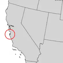 Hesperocyparis macrocarpa is a paleoendemic, with fossilized remains discovered in Drakes Bay and Rancho La Brea evidencing a much larger extent in the past.[5]