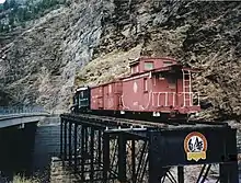 The Denver and Rio Grande Western Railroad Narrow Gauge Trestle is located in Cimarron Canyon near Morrow Point Dam. It is the last remaining narrow gauge railroad trestle in the Black Canyon of the Gunnison. The trestle was built in 1895 by the Denver and Rio Grande Western Railroad and was placed on the National Register of Historic Places in 1976.