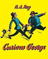 Curious George is a children's book written and illustrated by Margret Rey and H. A. Rey, and published by Houghton Mifflin in 1941.[1] It is the first book in the Curious George series and it tells the story of an orphaned chimpanzee (referred to as a monkey in the books) named George and his adventures with the Man with the Yellow Hat.[2] As of May 1, 2021, it has sold over 25 million copies, and has been translated into various different languages such as Japanese, French, Afrikaans, Portuguese, Swedish, German, Chinese, Danish, and Norwegian.[3] It is also in the Indie Choice Book Awards Picture Book Hall of Fame[4] and has been the subject of scholarly criticism.