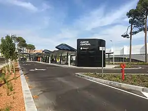 Curtin Central bus station was opened on 17 February 2019.[1] It took 18 months to construct.[2][3] Initially, 944 buses served the station each weekday. It was a joint project between the Public Transport Authority (PTA) and Curtin University. The total budget was $15 million, with the PTA contributing $5 million, and Curtin University paying for the rest.[4][5] It is at the centre of a transit-oriented development featuring student accommodation and retail, currently under construction as of June 2021.[6]