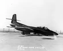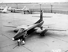 The Curtiss-Wright XF-87 Blackhawk (previously designated the XP-87) was a prototype American all-weather jet fighter-interceptor and the company's last aircraft project.[1] Designed as a replacement for the World War II–era propeller-driven P-61 Black Widow night/interceptor aircraft, the XF-87 lost in government procurement competition to the Northrop F-89 Scorpion. The loss of the contract was fatal to the company; the Curtiss-Wright Corporation closed down its aviation division, selling its assets to North American Aviation.