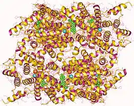 PDE in rod cells are oligomeric, made up of two heavy catalytic subunits, α (90 kDa) and β (85 kDa,) and two lighter inhibitory γ subunits (11 kDa each).[3][4]