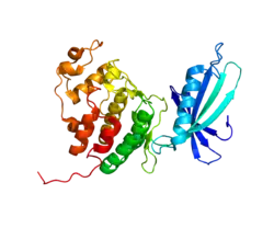 - Hanks SK (1987). "Homology probing: identification of cDNA clones encoding members of the protein-serine kinase family". Proc. Natl. Acad. Sci. U.S.A. 84 (2): 388–92. Bibcode:1987PNAS...84..388H. doi:10.1073/pnas.84.2.388. PMC 304212. PMID 2948189.