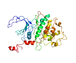 The protein encoded by this gene is a member of the cyclin-dependent kinase (CDK) family. CDK family members are highly similar to the gene products of S. cerevisiae cdc28, and S. pombe cdc2, and known as important cell cycle regulators. This kinase was found to be a component of the multiprotein complex TAK/P-TEFb, which is an elongation factor for RNA polymerase II-directed transcription and functions by phosphorylating the C-terminal domain of the largest subunit of RNA polymerase II. This protein forms a complex with and is regulated by its regulatory subunit cyclin T or cyclin K. HIV-1 Tat protein was found to interact with this protein and cyclin T, which suggested a possible involvement of this protein in AIDS.[5]