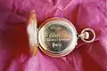Back cover open, movement cover with engraved name of the watchmaker, serial No.10630, and (probably) the name of the store for which it was made.