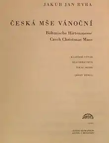 Ryba composed his most famous work in 1796, a year after he managed to resolve a dispute over his teaching methods with the priest Kašpar Zachar.[3] He wrote the music to a Czech libretto of his own devising; It was his only "mass" composed to a Czech text,[4] although several of his earlier pastoral masses included interpolations with Czech text. Ryba did not identify this mass in his list of compositions created from 1782 to 1798, mentioning rather only "seven pastoral masses, one of them in Czech."[3] The autograph manuscript was lost; today only the title page is preserved intact. Some parts of the composition were performed separately as pastorales (pastorellas) and the text gradually adapted with changes in Czech. Although Ryba created more than 1,000 compositions, his Czech Christmas Mass remains one of the few works by him performed regularly to date.